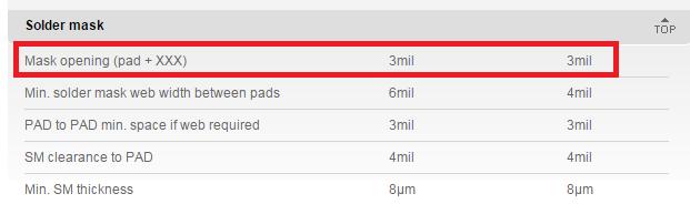 Solder mask is nothing but an opening to prevent solder bridges between adjacent pads and traces during soldering process. Most manufacturers define such opening as “mask opening”.