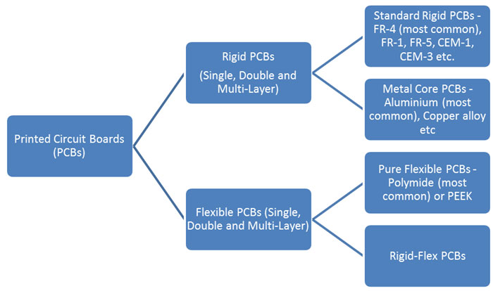 Refer following chart to understand various types of PCBs that are in common use these days:
